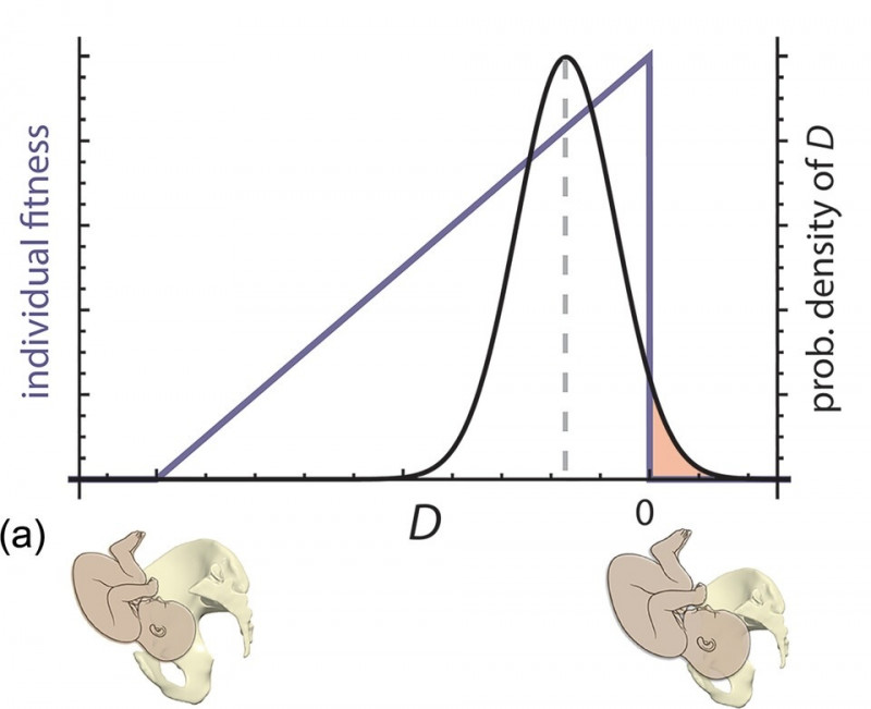 The study compares historic Swiss birth records (1896–1939) with contemporary French data (2011–2013) to quantify changes in fetopelvic fit across roughly four generations. The authors calculated a composite variable D?, capturing the fetopelvic fit, to test how birth interventions can shift the distribution of births at risk for fetopelvic disproportion. Their findings support the prediction that the relaxation of stabilizing selection following the widespread adoption of routine Caesarean sections facilitates the continued accumulation of susceptibility to fetopelvic disproportion. They illustrate how medical interventions can alter the evolutionary dynamics of parturition and contribute to the persistence and amplification of susceptibility to fetopelvic disproportion.